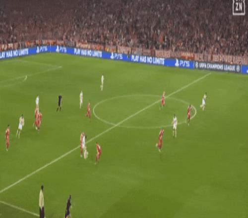 上一戰(zhàn)極明白:凱恩壓迫呂迪格,格納布里們協(xié)同壓迫,迪亞斯對付阿諾德,足以切斷皇馬后場所有短傳路線,迫使皇馬頻繁大腳丟失球權(quán)。拜仁推進到進攻三區(qū)時,皇馬只能收縮陣型,臨時構(gòu)筑五人防守線。皇馬只能防反:抓拜仁整體防線高位前壓的漏洞,奪回球權(quán)后立刻極速攻防轉(zhuǎn)換,直插拜仁身后。