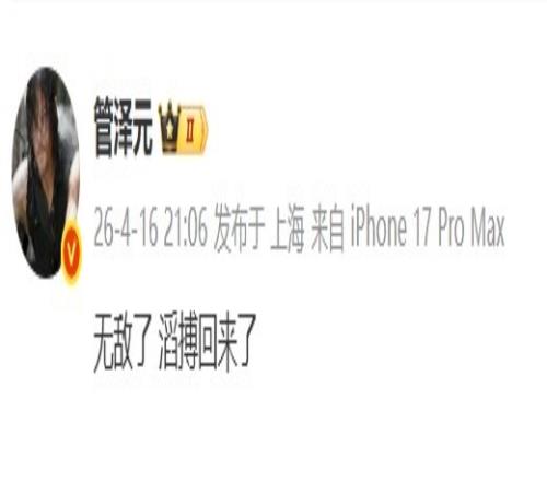 管澤元看TES橫掃BLG:無敵了滔搏回來了 大精靈 2026-04-16 23:00:36 體育播報4月16日宣 LPL第二賽段TES以2-0橫掃BLG,解說管澤元賽后發(fā)文:無敵了 滔搏回來了 ??? 電競游戲英雄聯(lián)盟LPLBLGTES 上一篇: Duro:和去年相比有所遺憾,失敗如果有收獲也可以接受下一篇: 艾麗范寧自曝新劇全裸出鏡:不為挑逗實為劇情需要