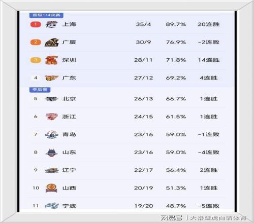 大黑馬深圳男籃以聯(lián)盟第二場的14連勝穩(wěn)住第三排名,將廣東男籃和北京男籃壓在身后;