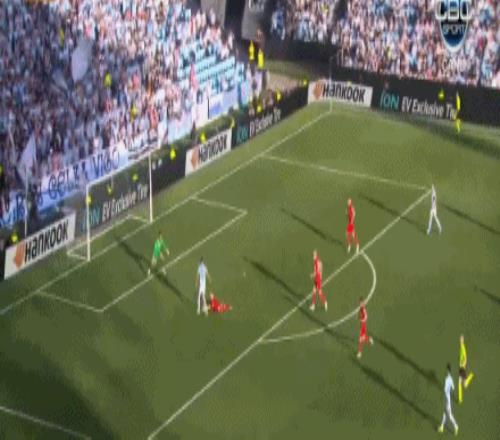 第90+1分鐘,斯韋德貝里突入禁區(qū),幫助塞爾塔扳回一球,塞爾塔1-3弗賴堡