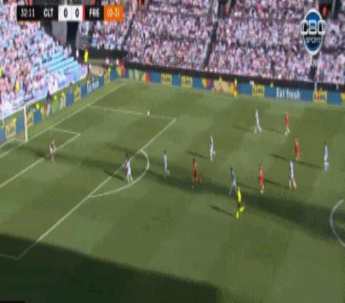第32分鐘,馬肯戈助攻,馬塔諾維奇世界波破門,塞爾塔0-1弗賴堡