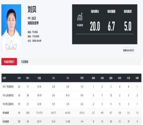 劉貝率領(lǐng)湖北女籃以75比70擊敗了山東女籃,她19投10中,三分球13中8,轟下28分12籃板2助攻2搶斷。劉貝還率領(lǐng)湖北女籃以94比84擊敗浙江女籃,她18投8中,三分球9投3中,得到21分5籃板9助攻1搶斷。