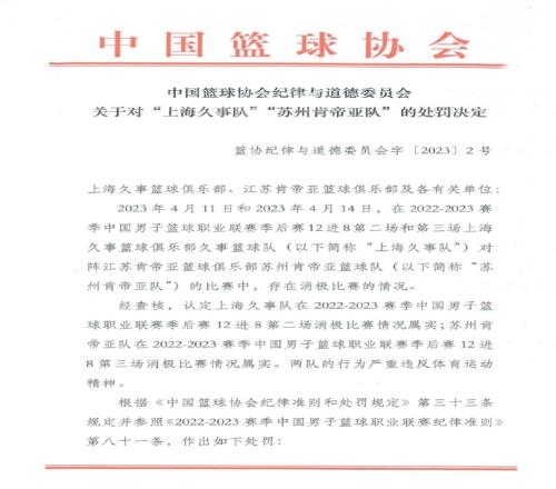 2023年4月17日,中國(guó)籃協(xié)開出重磅罰單:因在2023年CBA季后賽12進(jìn)8,江蘇對(duì)陣上海系列賽的第2場(chǎng)和第3場(chǎng),存在消極比賽的情況,李楠被罰在3年內(nèi)中止教練員注冊(cè)資格。今日李楠的處罰期限已滿,將重新獲得教練員注冊(cè)資格。