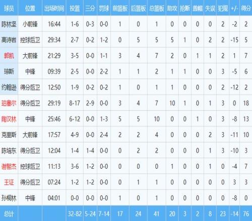 本場比賽,傷愈復(fù)出的克里斯?fàn)顟B(tài)平平,得到10分2籃板。珀塞爾拿下全隊(duì)最高的18分7籃板10助攻,是全隊(duì)發(fā)揮最出色的外援。陶漢林依舊強(qiáng)硬,在麥基和周琦面前得到13分10籃板。其他球員無人得分上雙,約翰遜如同夢游,9投僅1中,得到2分。瓊斯上場9分半,得到6分2籃板。