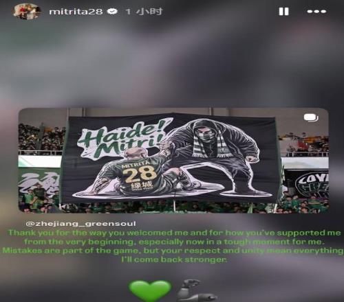 米特里策感謝浙江球迷Tifo聲援:我會以更強的姿態(tài)回歸