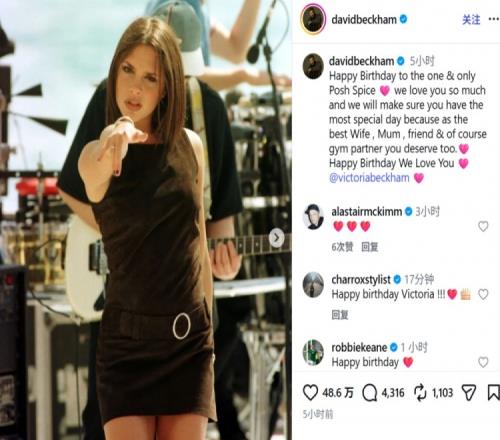 貝克漢姆曬出維多利亞的多張照片,并配文:“祝獨一無二的辣妹維多利亞生日快樂