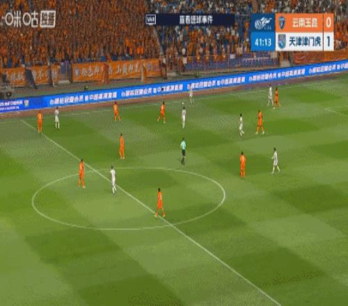 第41分鐘,王政豪后場(chǎng)起長(zhǎng)傳,基萊斯單刀破門(mén),云南玉昆0-1天津津門(mén)虎?!?/p>