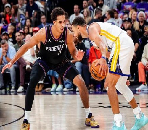 借助兩位小將的牽制,庫里夾縫命中三分,即便投籃4中1效率不佳,但他的場上牽制力依舊為隊友創(chuàng)造出大量空位機會,可惜霍福德未能把握住機會命中投籃。太陽第二節(jié)手感下滑,勇士抓住機會打出15分反擊波,分差被大幅縮小。半場尾聲,杰倫格林命中半場壓哨三分,半場轟下14分,力壓7中2的布克,幫助太陽50:45保持領(lǐng)先,比賽懸念依舊保留。