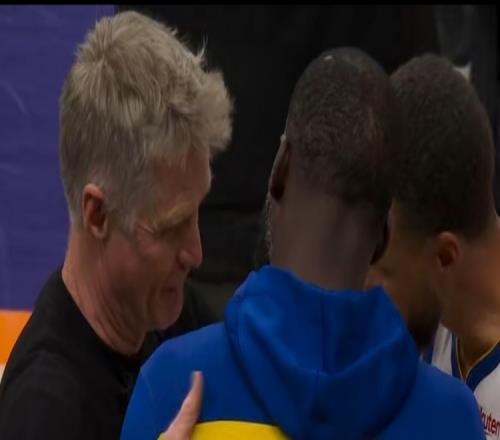 太陽開場施壓兇猛,庫里罕見地單場不止一次被逼到邊線失誤,勇士8分鐘里7失誤。第一節(jié)末尾最明顯:波金吉斯喂球給底角霍福德慢一拍被切,布克帶反擊一個三分,31比15——太陽太快了。