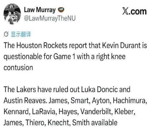 火箭全員齊整,湖人那邊東契奇&里夫斯均因傷歸期未定,外界普遍認為火箭可以笑到最后。