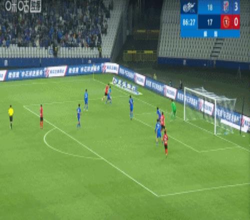 第17分鐘,高天意傳中,金順凱門前搶點(diǎn)頭球破門,申花2-0!