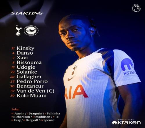 北京時(shí)間4月19日0:30,英超第33輪托特納姆熱刺坐鎮(zhèn)新白鹿巷球場迎戰(zhàn)布萊頓。賽前,雙方公布首發(fā)陣容。