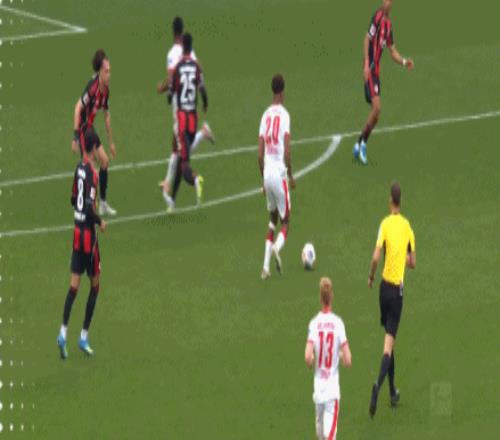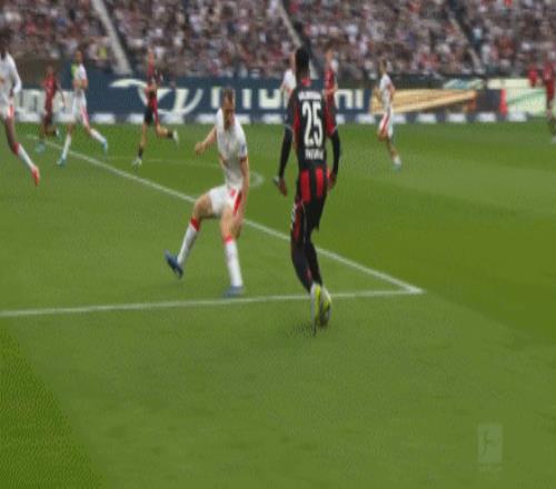 第81分鐘,努薩助攻,哈德小角度破門,法蘭克福1-3萊比錫