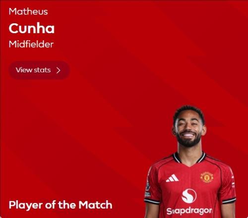 體育播報(bào)4月19日宣 官方消息,庫(kù)尼亞當(dāng)選曼聯(lián)客場(chǎng)1-0切爾西的球迷票選全場(chǎng)最佳。