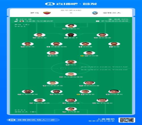 體育播報4月19日宣 2點45,意甲第33輪羅馬主場對陣亞特蘭大,此役兩隊首發(fā)已經(jīng)公布。
