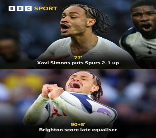 體育播報(bào)04月19日宣 熱刺vs布萊頓,魯特爾破門,布萊頓第94分鐘絕平熱刺!鏡頭隨即給到西蒙斯,這場世界波+助攻的他非常痛苦!