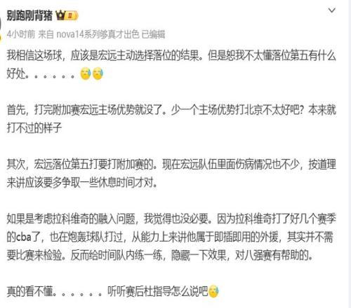坐鎮(zhèn)主場(chǎng)卻遭福建爆冷,不過賽后有不少球迷表示廣東隊(duì)是不是在下棋?不要前4要第5去打附加賽,多賺一輪主場(chǎng)門票收入,甚至就連媒體人也出來帶節(jié)奏。