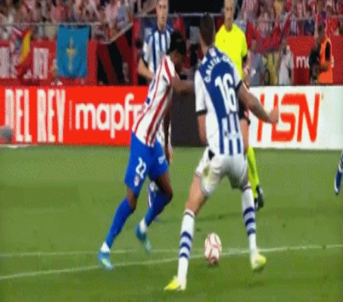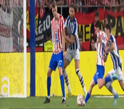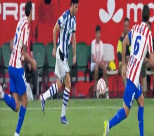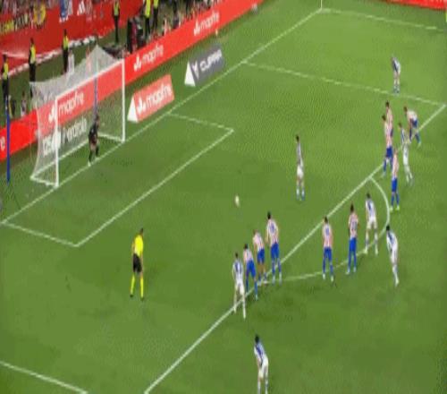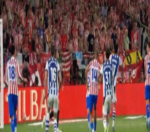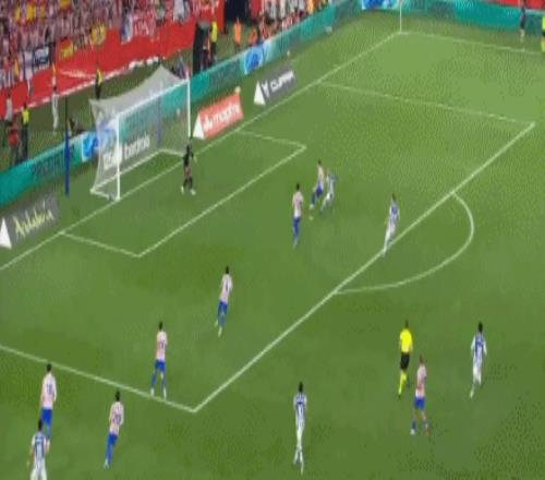 第1分鐘,開門紅!巴雷內(nèi)切亞接隊(duì)友傳中頭槌破門,馬競0-1皇家社會(huì)