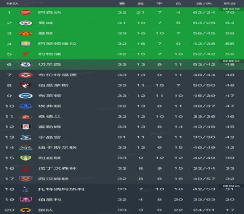 北京時間4月19日,英超第33輪結(jié)束了5場比賽,我們看看最新積分榜變動,主要的戰(zhàn)況是:曼聯(lián)1-0小勝切爾西,熱刺2-2布萊頓,紐卡斯而聯(lián)1-2不敵伯恩茅斯、利茲聯(lián)3-0狼隊,布倫特福德0-0富勒姆!