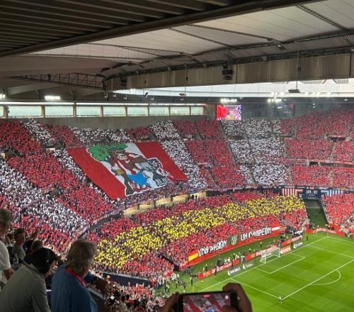 國王杯決賽當(dāng)天上午,筆者搭乘高鐵從馬德里前往塞維利亞,車廂幾乎被馬競球迷占滿,他們在火車上放聲歌唱,對于國王杯奪冠極有信心。決賽開場前的卡爾圖哈體育場看臺上,也是馬競球迷多出一籌。在歐冠時隔多年重返四強之后,床單軍團以國王杯冠軍為接下來的歐冠半決賽之旅提振士氣,看起來也是順理成章的事情。
