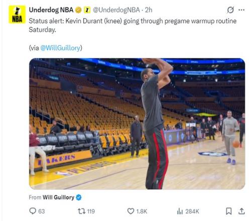 杜蘭特因為右膝受傷無法出戰(zhàn)G1,杜蘭特常規(guī)賽鏖戰(zhàn)78場沒想到在隊內(nèi)訓(xùn)練中受傷。烏度卡透露杜蘭特是髕骨上方跟隊友相撞后遭遇戳傷,除了有疼痛感外還影響了他的移動,但X光與MRI沒有結(jié)構(gòu)性傷。