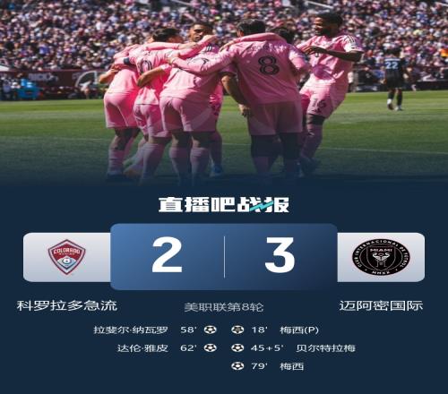 梅西雙響,十人邁阿密國(guó)際客場(chǎng)3-2戰(zhàn)勝科羅拉多急流,邁阿密終結(jié)聯(lián)賽2連平,已經(jīng)7輪不敗。