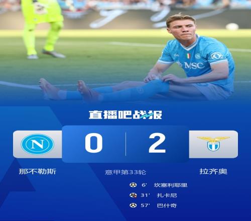 那不勒斯以0-2不敵拉齊奧。積分榜方面,那不勒斯積66分排在第二,拉齊奧積47分排在第九。