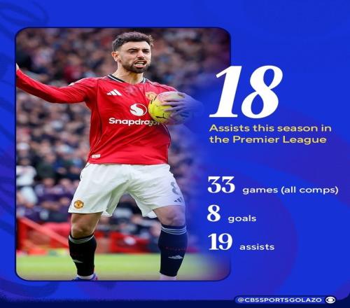 B費(fèi)本賽季在英超已收獲18次助攻,距離亨利(阿森納,02-03賽季)和德布勞內(nèi)(曼城,19-20賽季)保持的英超單賽季20次助攻紀(jì)錄已相距不遠(yuǎn)。