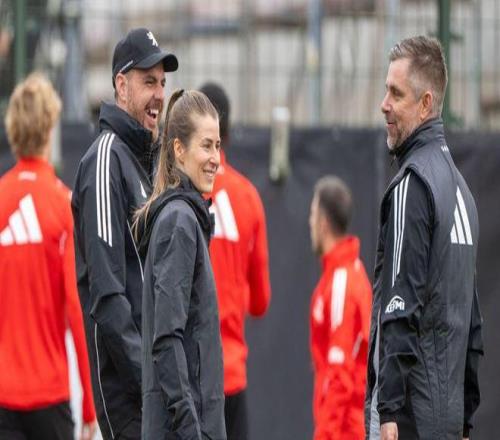 2023年,她成為德甲歷史上首位進(jìn)入一線隊(duì)教練組的女性——注意,是在全男性后臺(tái)團(tuán)隊(duì)里。此后她帶過(guò)U19梯隊(duì),執(zhí)教過(guò)德國(guó)女足青年隊(duì),本賽季作為助理教練全程參與一線隊(duì)工作。當(dāng)主帥Steffen Baumgart下課,她按順位接班,鏈條完整。