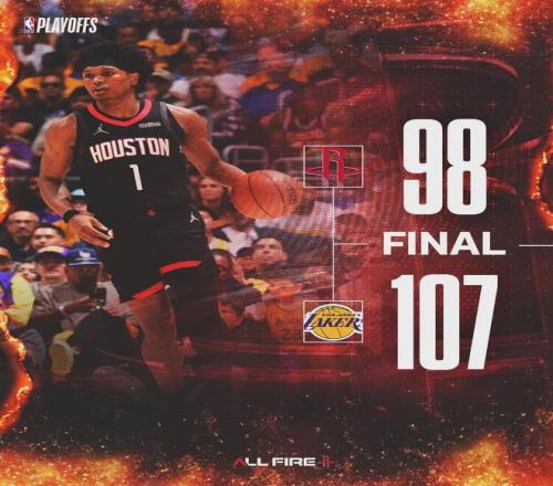 21-3,火箭贏了湖人多達(dá)18個前場板,但還是98-107落敗。