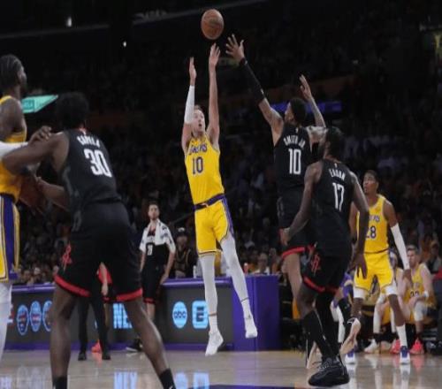 比賽從首節(jié)就埋下伏筆。肯納德手感燙到冒煙,兩記三分+中投獨(dú)攬11分,湖人開(kāi)局8-0打懵火箭。次節(jié)雙方陷入拉鋸,但艾頓內(nèi)線19分11籃板硬剛申京(19中6僅19分),八村塁10中6高效砍14分,斯瑪特15分8助攻2帽攻防一體——角色球員全員敢打敢拼!