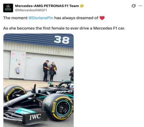 年僅22歲的法國女車手多瑞安·賓坐進了梅賽德斯W12賽車的駕駛艙,完成她職業(yè)生涯首次F1賽車測試。這不僅是她個人賽車生涯中一個重要里程碑,同時也標志著她成為梅賽德斯車隊歷史上第一位駕駛其F1賽車進行測試的女車手。