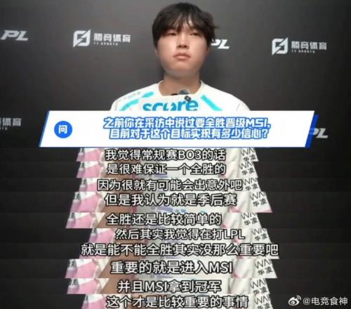 “其實(shí)我覺得在打LPL能不能全勝其實(shí)沒那么重要吧,重要的就是進(jìn)入MSI,并且拿到MSI的冠軍,這才是比較重要的事情。”