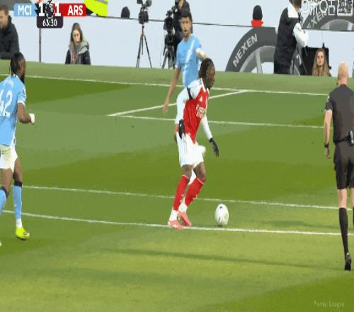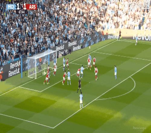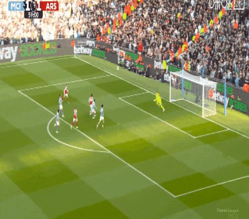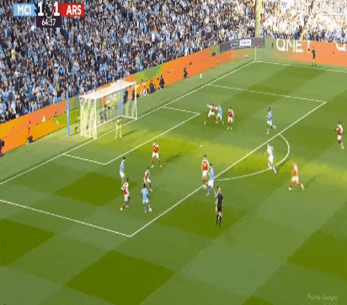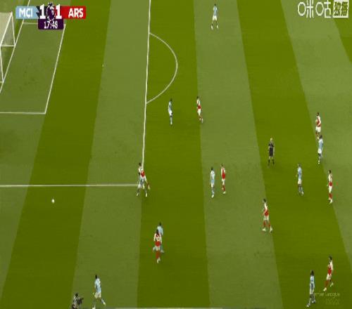 超級失誤!比賽第18分鐘,多納魯馬出球拖沓,哈弗茨將球擋進球門扳平比分!阿森納1比1曼城。