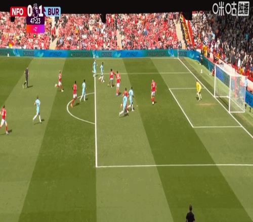 第45+2分鐘,哈特曼送助攻,弗萊明左腳推射破門!伯恩利1-0