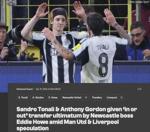 紐卡斯爾主帥埃迪-豪在新聞發(fā)布會上明確表示,托納利和戈登必須決定他們“是走是留”,兩人都被認為將在今夏轉會離隊。