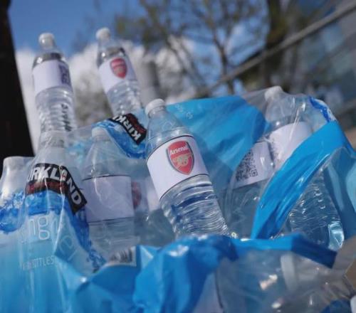 賽前印有阿森納logo的瓶裝水在伊蒂哈德球場外售賣,2英鎊1瓶。