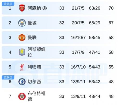 積分榜上,曼城少賽1場積67分仍居第2,阿森納積70分繼續(xù)領(lǐng)跑,但多賽一輪的他們,領(lǐng)先優(yōu)勢已被縮小至僅3分,英超爭冠正式進入白熱化階段。