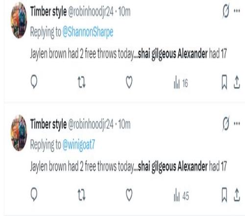 但更多的球迷都會(huì)說(shuō),這個(gè)比賽日杰倫-布朗2個(gè)罰球拿到26分,SGA17個(gè)罰球拿到25分。(SGA罰球拿15分占比25分的60%,一分王當(dāng)之無(wú)愧)