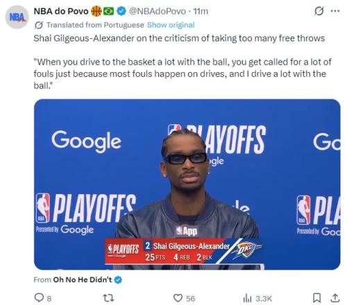 17罰25分引熱議!SGA回應(yīng):沖籃下多造犯規(guī)多美球迷調(diào)侃裁判幫扶