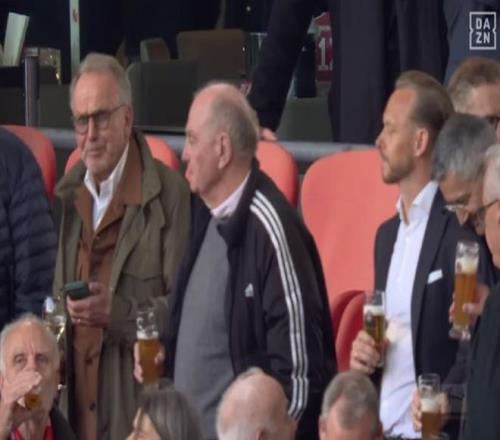 圖片報(bào):拜仁奪冠后赫內(nèi)斯、魯梅尼格等人在VIP區(qū)小酌來(lái)慶祝