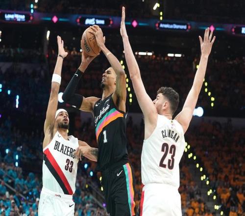 上半場(chǎng)比賽,阿夫迪亞13中7,3分3中1,罰球5中4,得到19分5板2助;羅威上場(chǎng)后表現(xiàn)不錯(cuò),6中4得到9分4板,夏普8分1板1助??R拉3分1助,亨德森3分1助,格蘭特3分2斷,克林根4投1中得到2分3板1助,霍勒迪2分2板5助,塞布爾2板1助;馬刺這邊,文班13中8,3分4中3,罰球2中2,得到21分2籃板。??怂?中4,3分4中2,得到10分,卡斯?fàn)?中3,得到9分,科內(nèi)特4中3,得到6分3籃板。