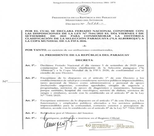巴拉圭總統(tǒng)簽署的放假法令