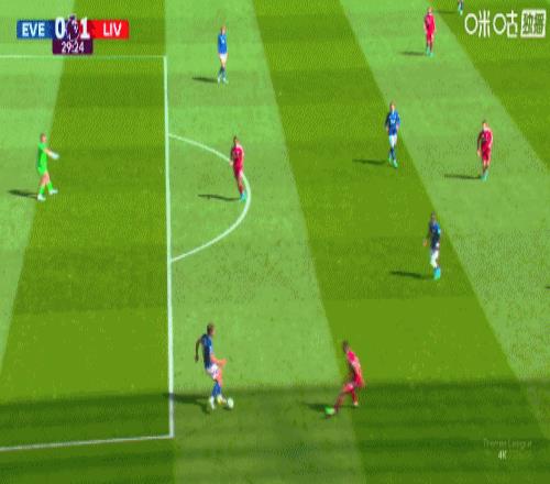 第28分鐘,埃弗頓后場傳球失誤被斷,加克波左路斜傳禁區(qū),薩拉赫跟上推射破門。