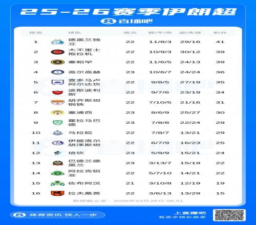 由于美伊沖突,2025-26賽季的伊朗聯(lián)賽從今年2月以來一直暫停。伊朗足協(xié)秘書長海達特·蒙比尼表示,將根據(jù)目前聯(lián)賽積分榜排名確定亞冠參賽球隊。目前排在積分榜首位的德黑蘭獨立將獲得下賽季的亞冠精英賽直接晉級資格,第二名大不里士拖拉機將參加亞冠精英賽的附加賽,而第三名塞帕罕將參加亞冠二級聯(lián)賽。