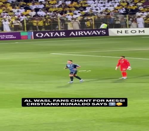 亞冠二對(duì)手的球迷高喊梅西,C羅示意閉嘴并比劃3的手勢(shì)
