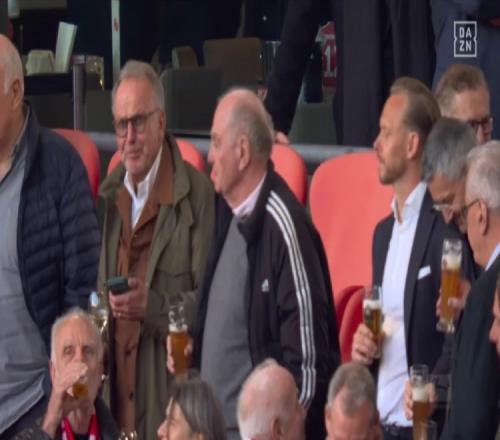 據(jù)德國媒體《圖片報(bào)》報(bào)道,拜仁高層在VIP看臺區(qū)域小酌,慶祝球隊(duì)衛(wèi)冕,赫內(nèi)斯和海納喝了小麥啤酒,魯梅尼格則選擇喝白葡萄酒。