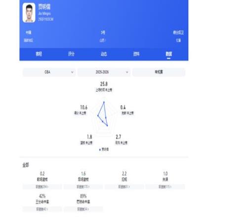 最佳第六人預計是山西男籃賈明儒。截至常規(guī)賽第40輪,賈明儒共出場39次,僅16次首發(fā),替補出場次數(shù)大于首發(fā),具備評選資格。