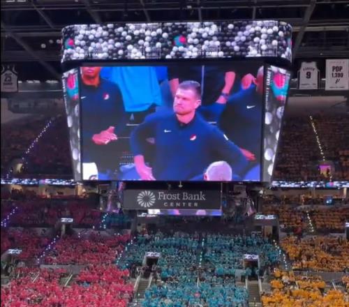 馬刺VS開拓者賽前介紹環(huán)節(jié)主場球迷給舊將斯普利特送上歡呼