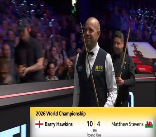 霍金斯104兩屆世錦賽亞軍史蒂文斯,晉級斯諾克世錦賽16強(qiáng)